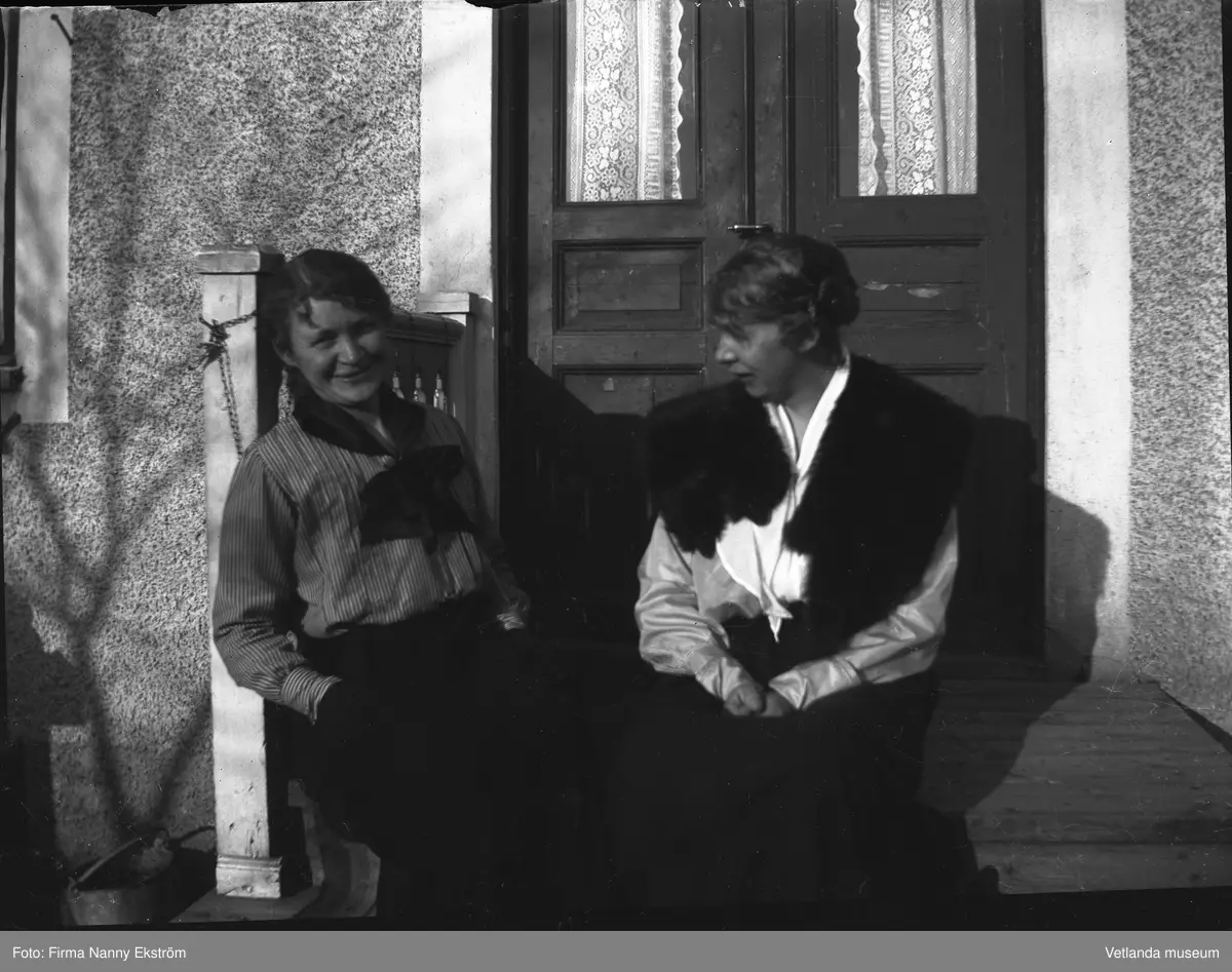 Två damer på trappan.
