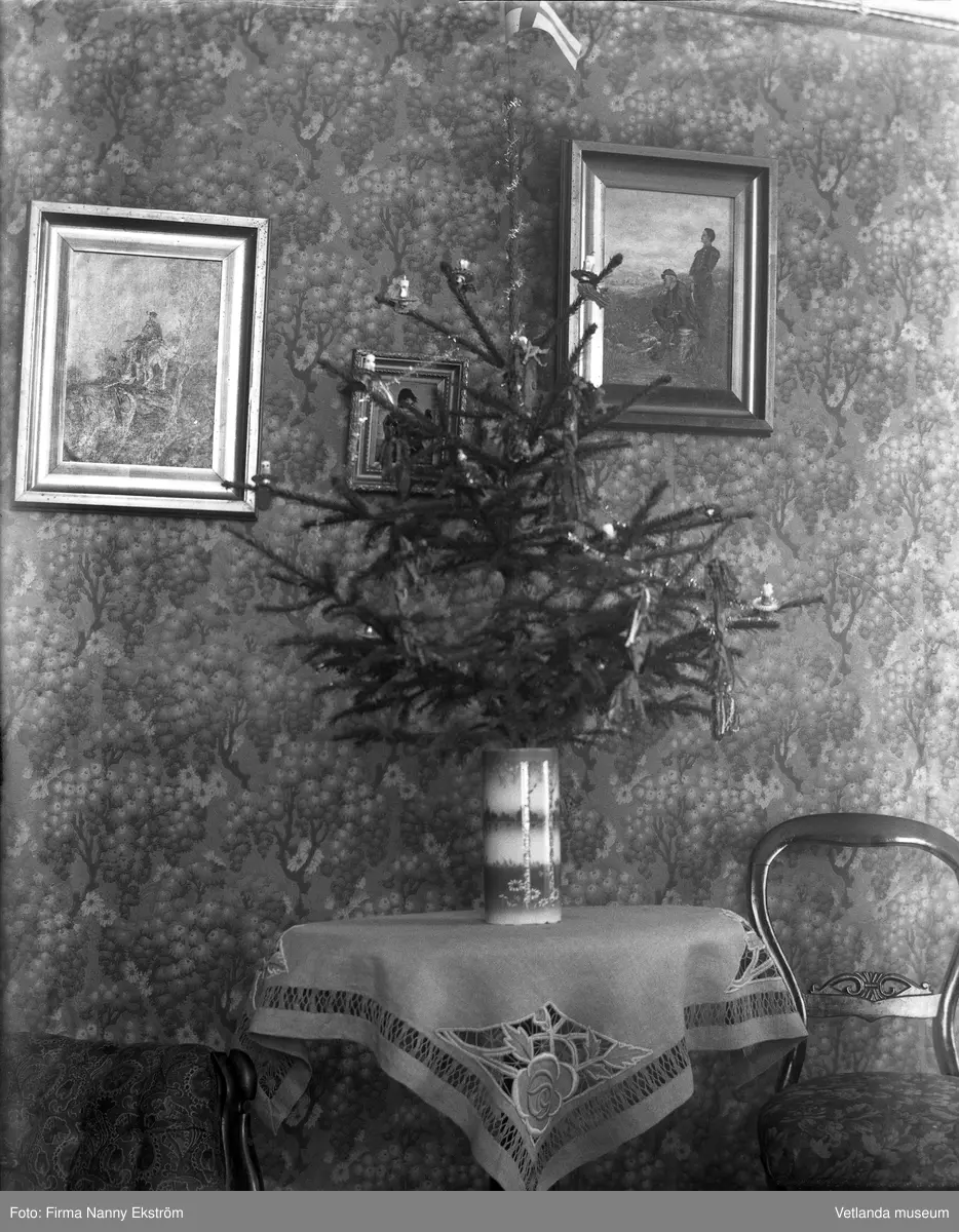 LIten julgran på bord.