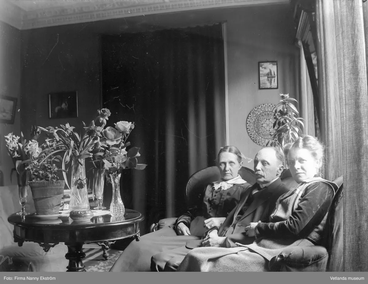 Mimmi och Ebbe Stenbäck i sitt hem med okänd kvinna.