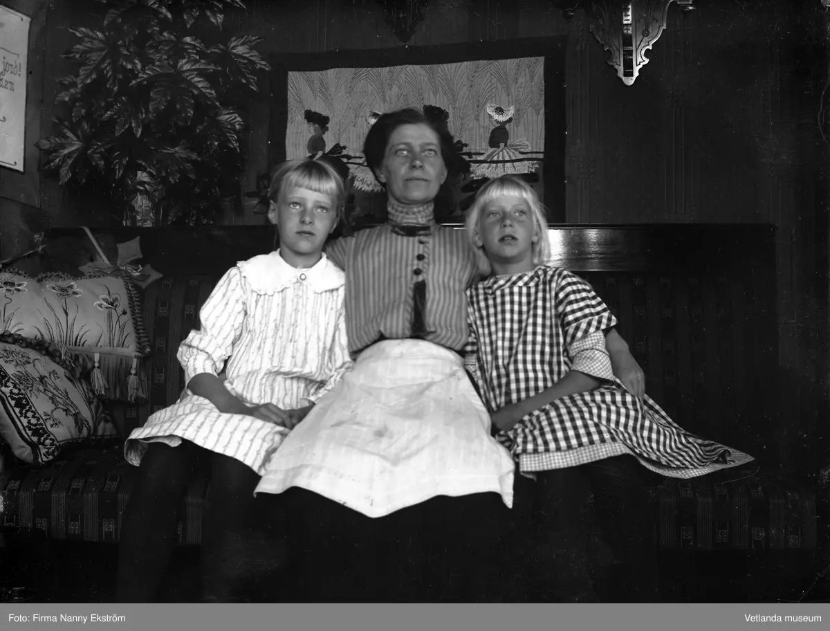 Kvinna flankerad av två barn.