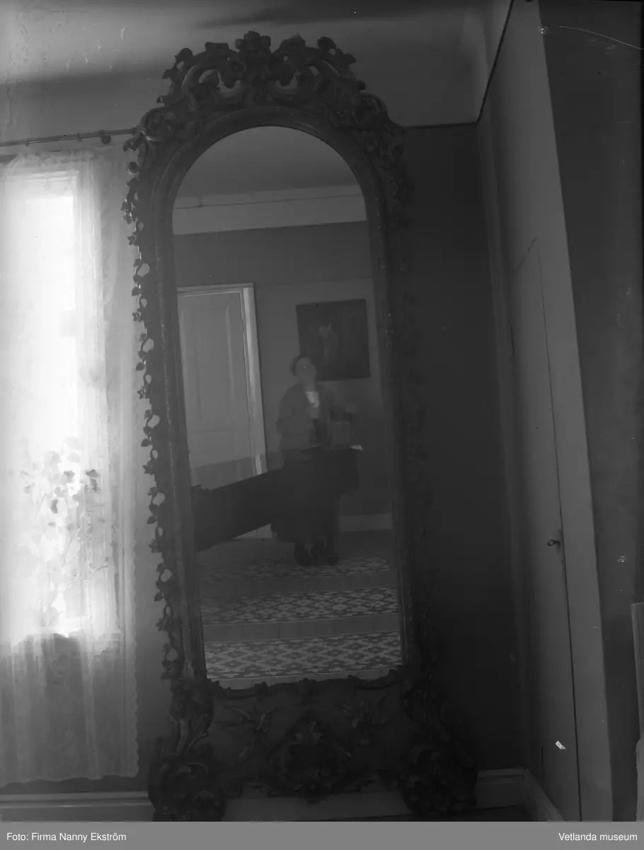 Interiör, avfotograferad spegel. I spegelbilden syns fotografen (antagligen Nanny Ekström)