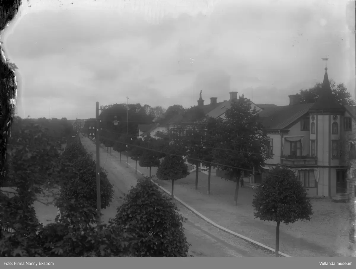 Utsikt från Mjölby ullspinneris hus på Storgatan, kvarteret boken i Vetlanda.