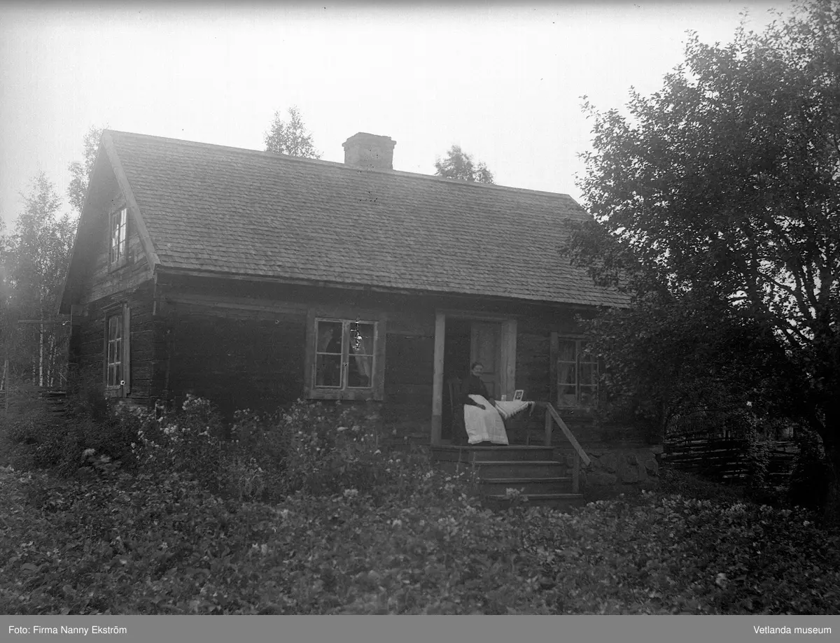 Oidentifierad kvinna som sitter på farstutrappen. Eventuellt Anna i Ekeflo?