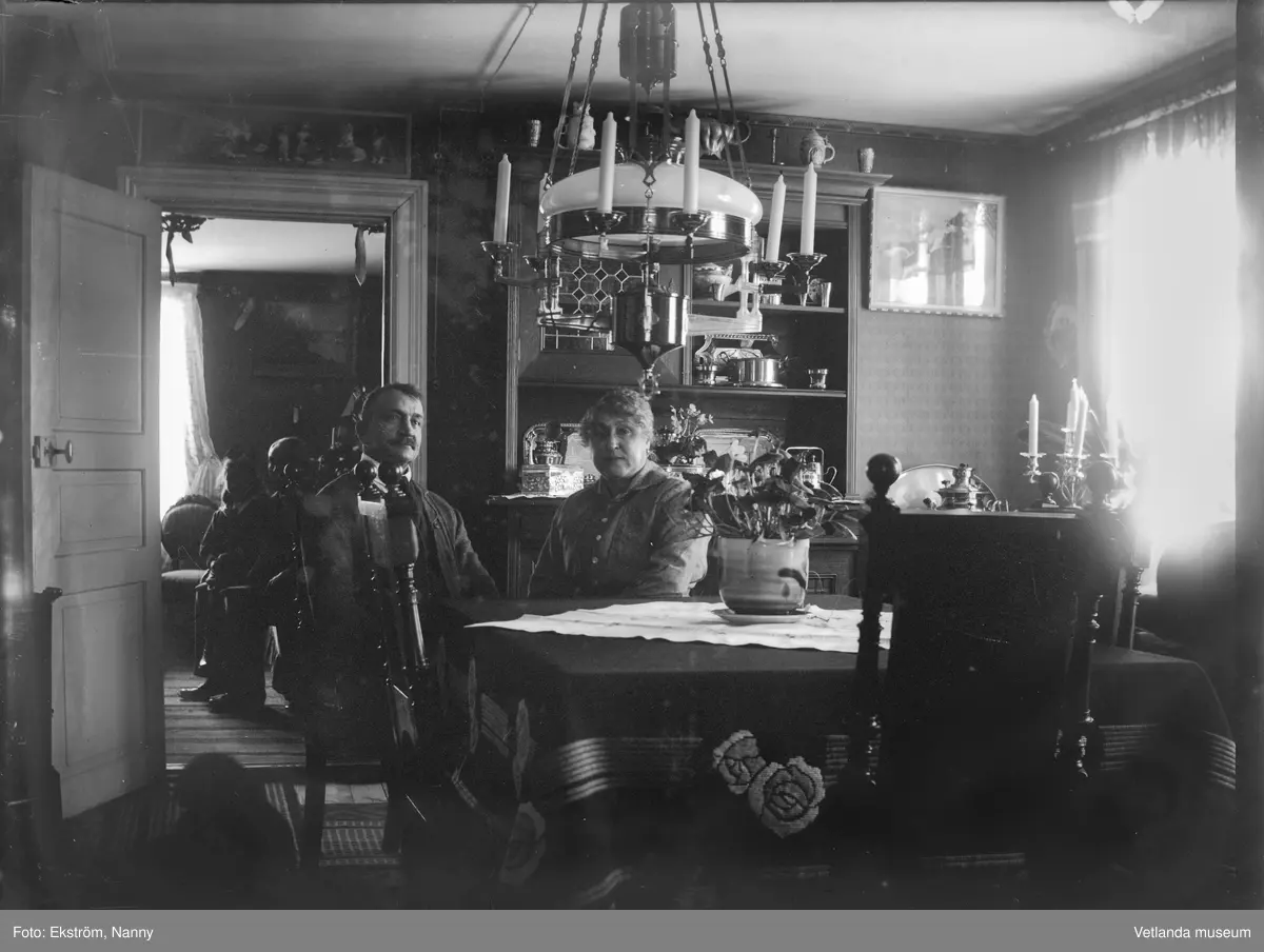 Oidentifierat fotografi av familjekaraktär. Personerna på bilden är troligtvis bekanta eller släkt till fotografen Nanny.