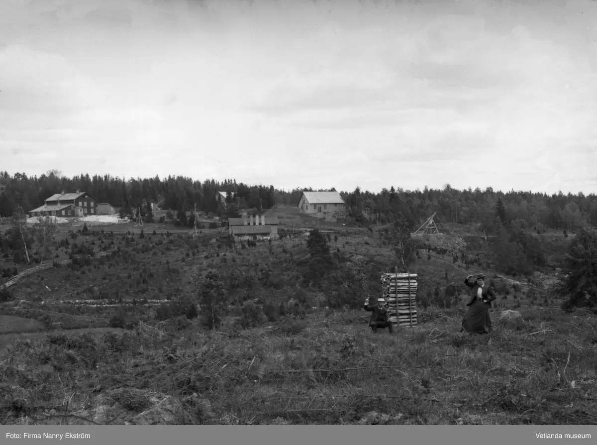 Man och kvinna som poserar. I bakgrunden syns gruvan Adolf Fredrik i Ädelfors. Kvinnan på bilden är Karolina Filippina Bortoseck, mannen är eventuellt hennes bror.