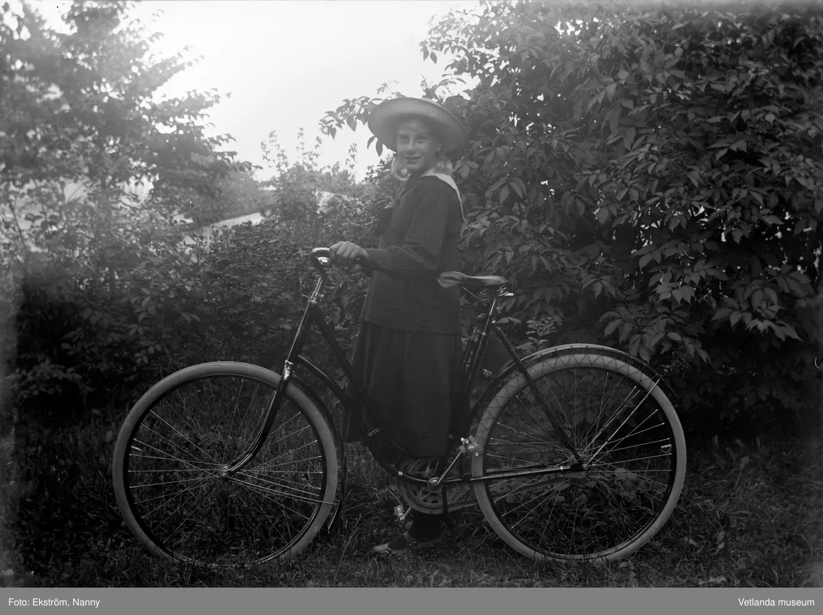 Anna Karin med en cykel. Anna Karin var dotter till fotografen Nannys syster Amy.