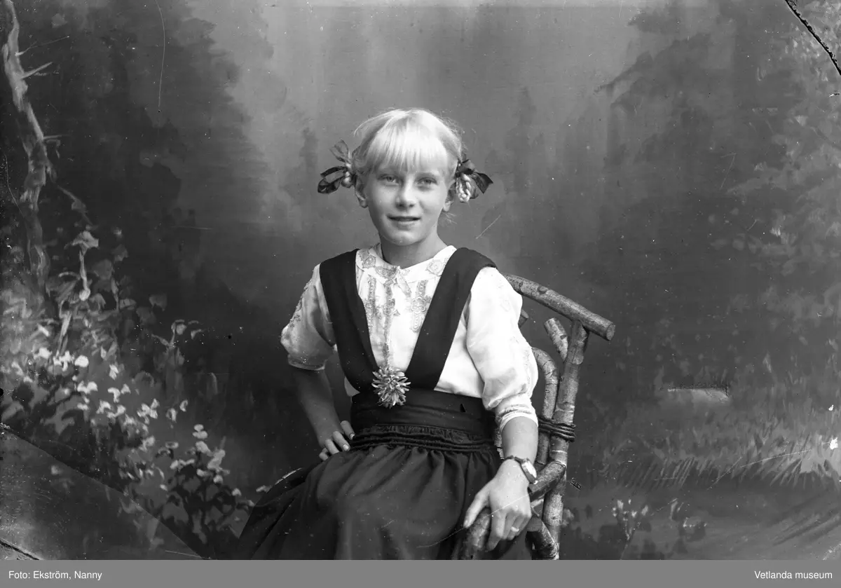 Anna Karin Zackrisson i fotoateljén på Mogärde i Vetlanda. Anna Karin var dotter till fotografen Nannys syster Amy.