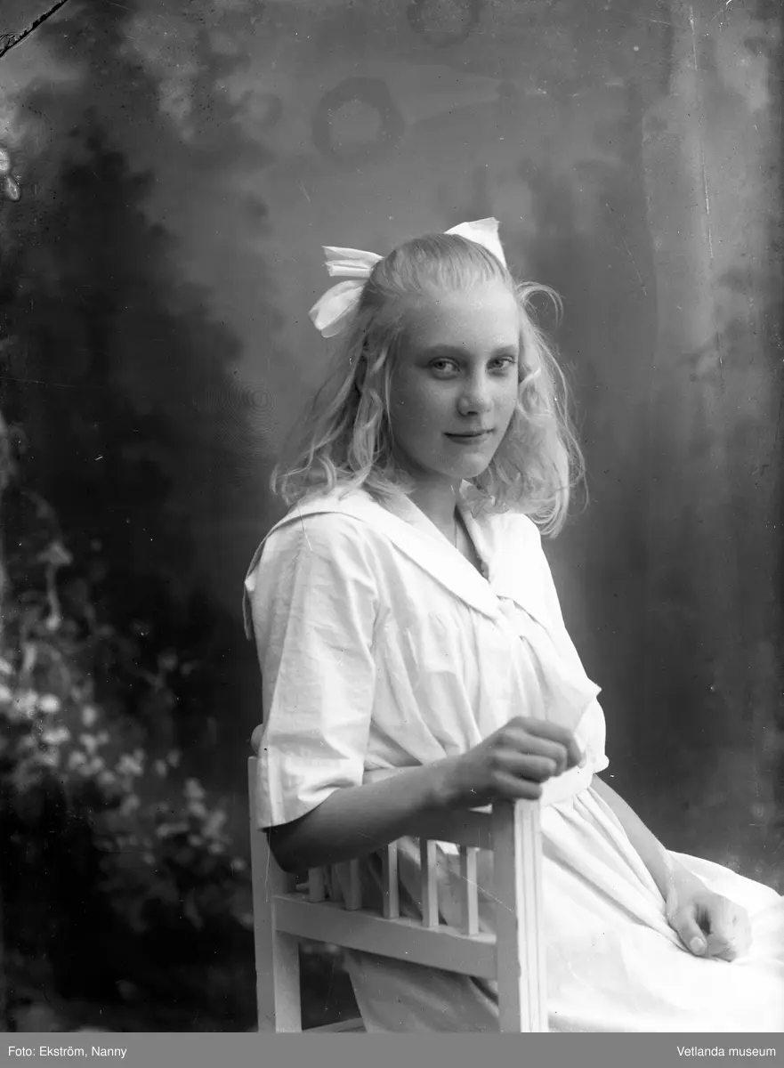 Anna Karin Zackrisson i fotoateljén på Mogärde i Vetlanda. Anna Karin var dotter till fotografen Nannys syster Amy.