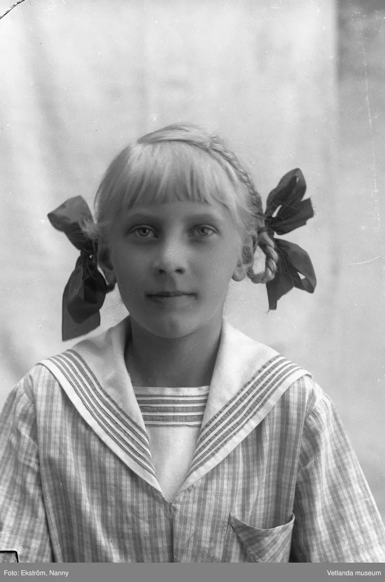 Titel: Anna Karin Zackrisson i fotoateljén på Mogärde i Vetlanda. Anna Karin var dotter till fotografen Nannys syster Amy.