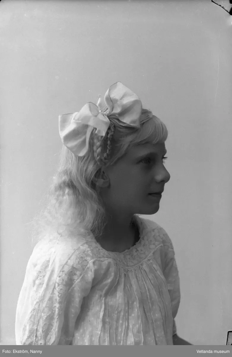 Titel: Anna Karin Zackrisson i fotoateljén på Mogärde i Vetlanda. Anna Karin var dotter till fotografen Nannys syster Amy.