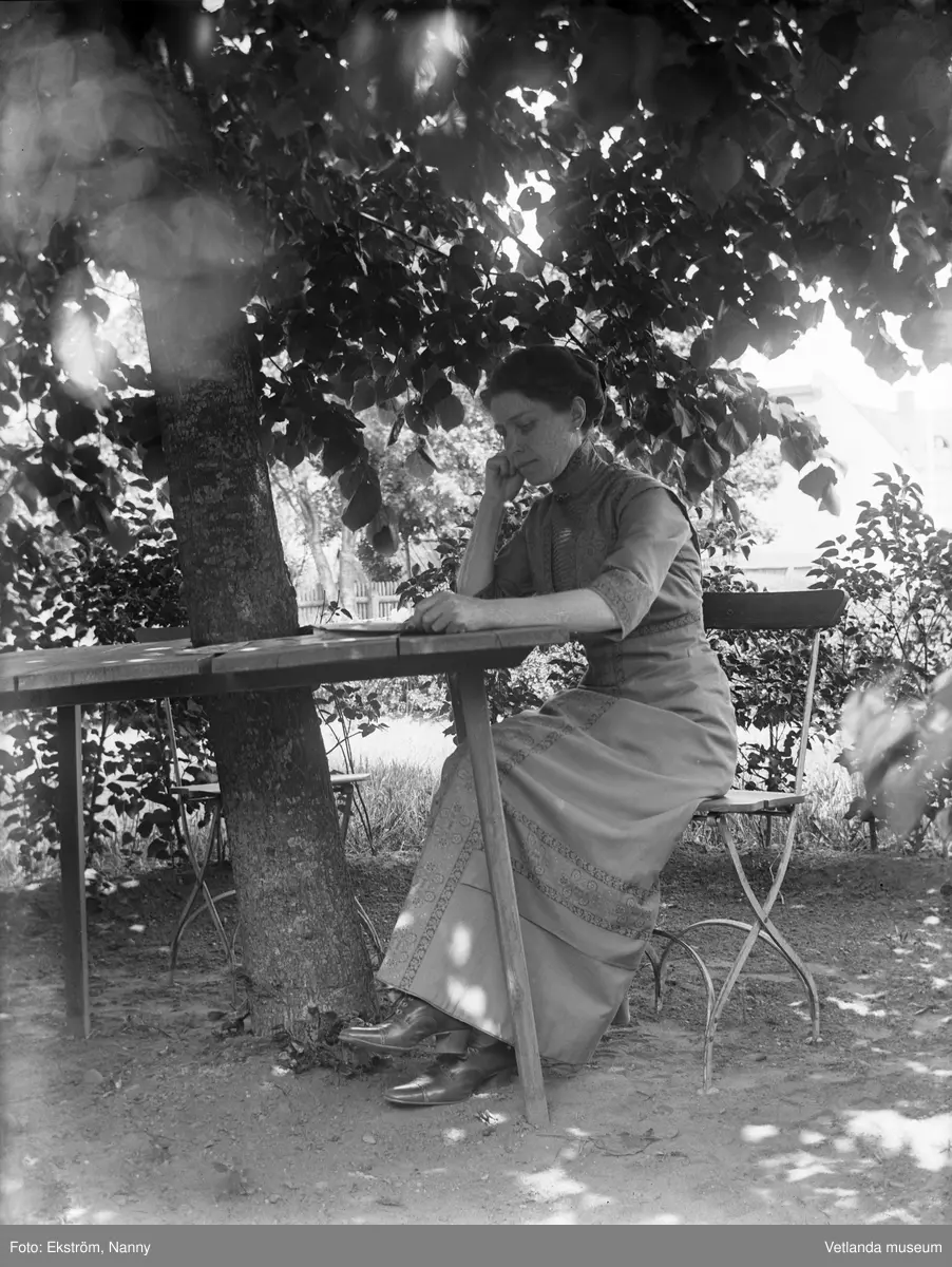 Fotografen Nanny Ekström i trädgården till fotoateljén på Mogärde i Vetlanda.