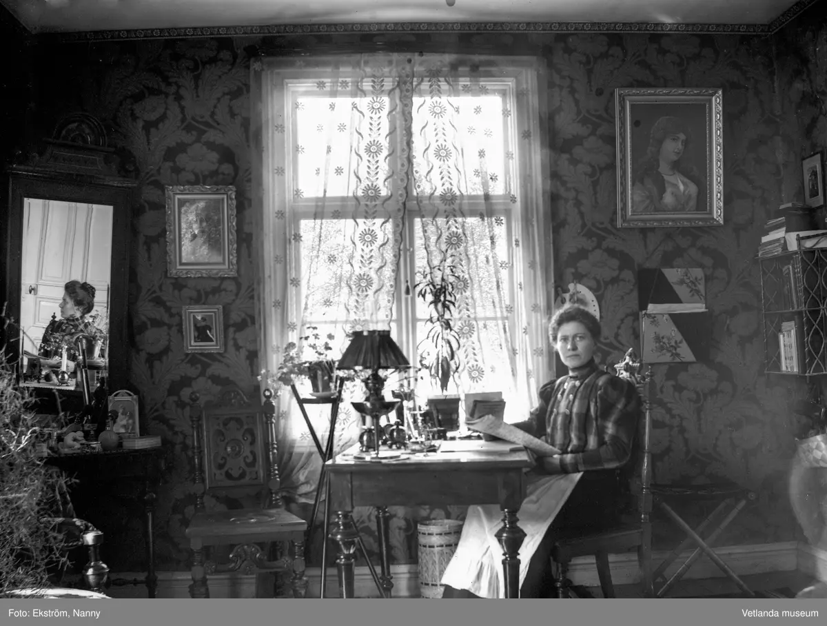 Fotografen Nanny Ekström troligtvis i bostaden på Mogärde i Vetlanda.