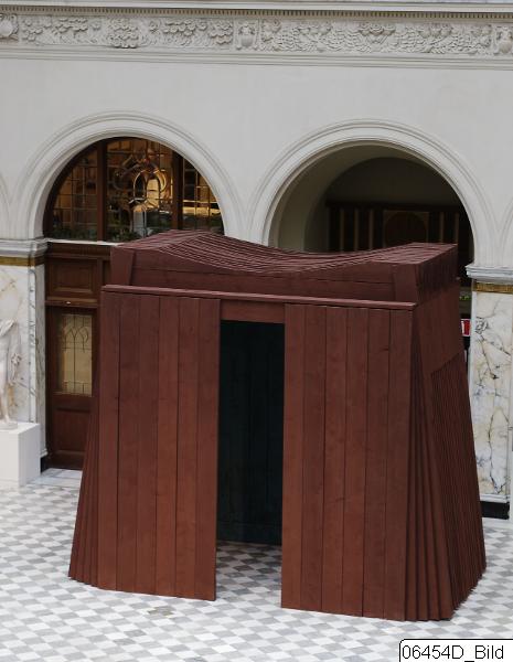 Beskrivning: Medelhavsmuseet, interiör. ”Design i Trä - under 5000 år” Kicki Bergqvist-Selders skulptur ”Vila”