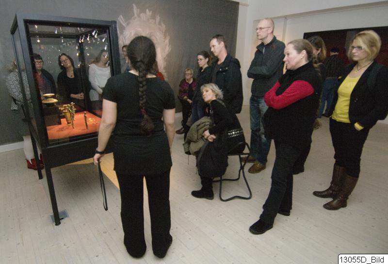 Dimitra Polidis visar utställningen ”Medea från Georgien - Skatter från antikens Kolchis” för museikollegor från Skansen.