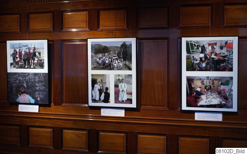 Beskrivning: Medelhavsmuseet, interiör. Utställning med Sören Hallgren´s bilder på en rumänsk pojke. Bilderna från boken ”Jozsef från Ghimes i Rumänien”