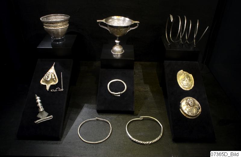 Beskrivning: Medelhavsmuseet, interiör från utställningen ”Guldskatter Rumänien under 7000 år”