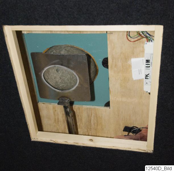 The A.G. Leventis Gallery of Cypriote Antiquities. Kultstenen sätts på plats i Ajia Irini montern. Hållaren till stenen.