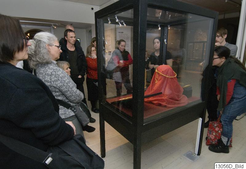 Dimitra Polidis visar utställningen ”Medea från Georgien - Skatter från antikens Kolchis” för museikollegor från Skansen.