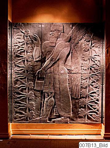 Medelhavsmuseet, interiör från utställningen “Kilskrift och ryttarfolk”. Öppnad maj 1996. Assyrisk relief