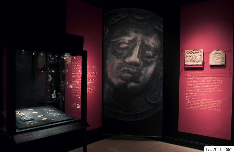 Beskrivning: Medelhavsmuseet, interiör från utställningen ”Guldskatter Rumänien under 7000 år”