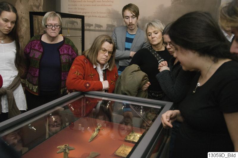 Dimitra Polidis visar utställningen ”Medea från Georgien - Skatter från antikens Kolchis” för museikollegor från Skansen.