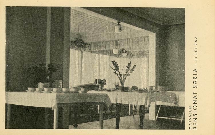 Enligt Bengt Lundins noteringar: "Pensionat Särla. Lyckorna. Matsalen".