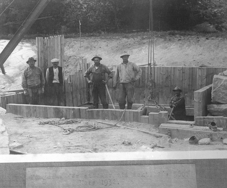 Fångdamm för stödmur vid sekt. 2. Mars 1931. Byggandet av Sotekanalen
