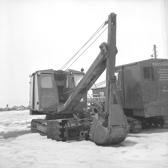 Text till bilden: "Grävmaskin och Vägverkets förråd.
