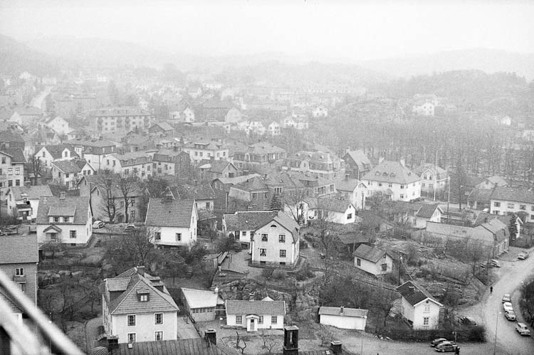 Text till bilden: "Från lasarettets 13 vån. Öster ut före motorvägsbygget". Samhör med bilderna 18 till 25 i album 2.