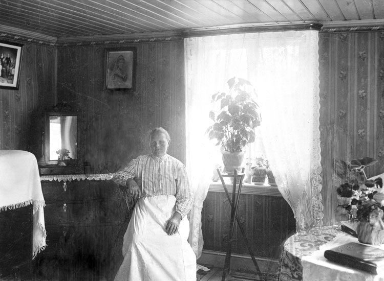 Uppgift enligt fotografen: "Uddevalla. Interiör m. Kvinna. Garvaremyren 6."