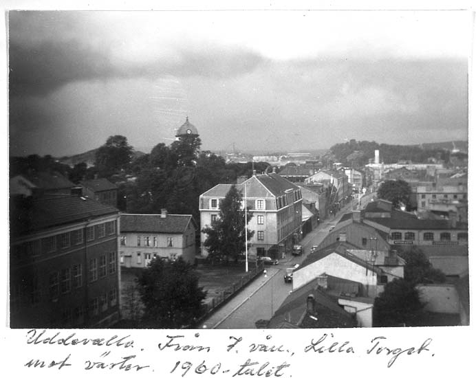 Text på kortet: "Uddevalla. Från 7. vån. Lilla Torget mot väster. 1960-talet".