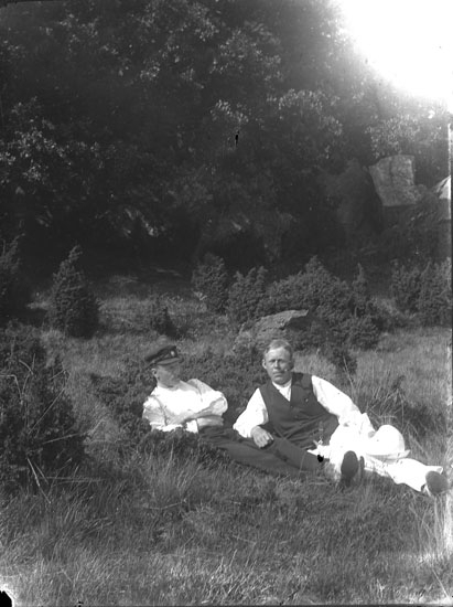 Enl. text i blå bok: "Två män på gräsbacke."