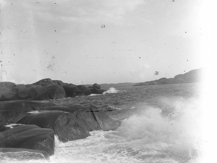 Enl. text i blå bok: "Brytand sjö vid klippstrand."