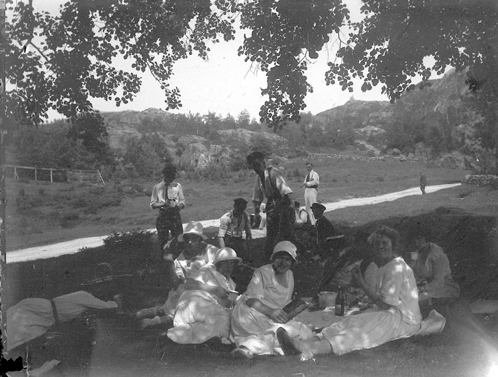 Enl. text i blå bok: "Persongrupp på utflykt."