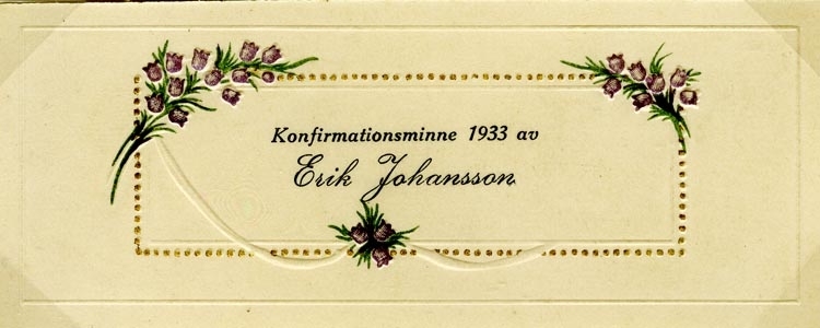 Text på kortet: Konfirmationsminne 1933 av Erik Johansson.