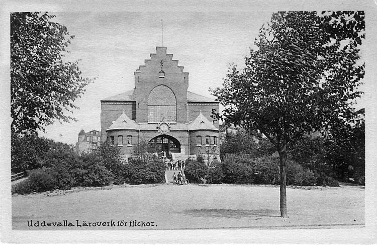 Tryckt text på vykortets framsida: "Uddevalla.Läroverk för flickor".
