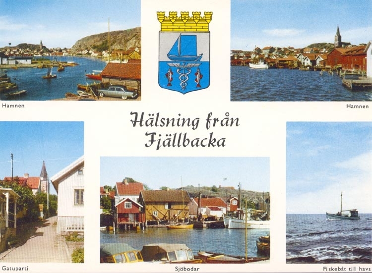 Tryckt text på kortet: "Hälsning från Fjällbacka".