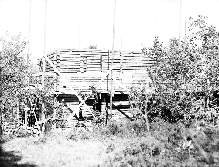 Text till bilden: "Byggnadssnickeravd. Dalslandstugan under arbete".