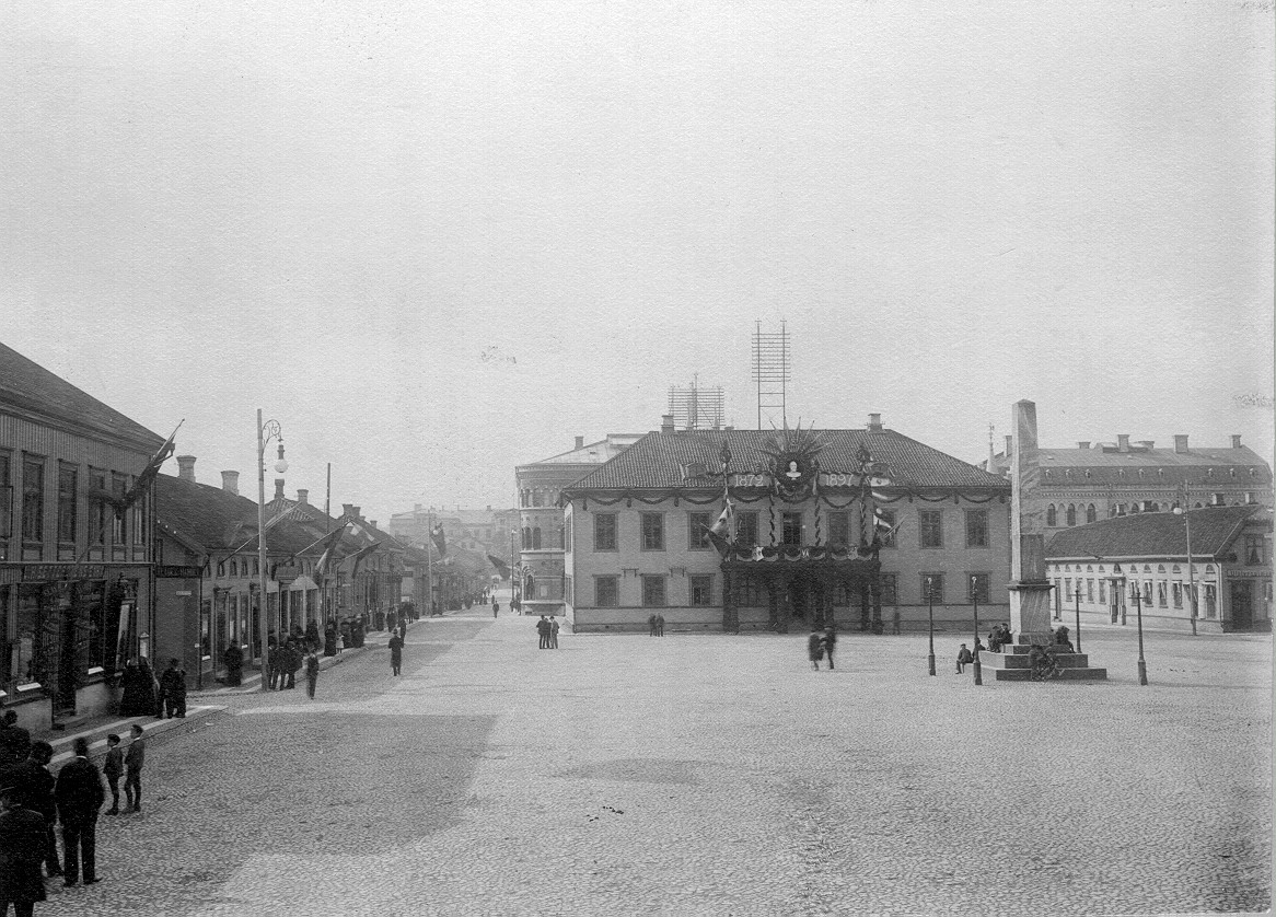 Oskar II:s 25-årsjubileum 1897. Stora Torget med rådhuset.