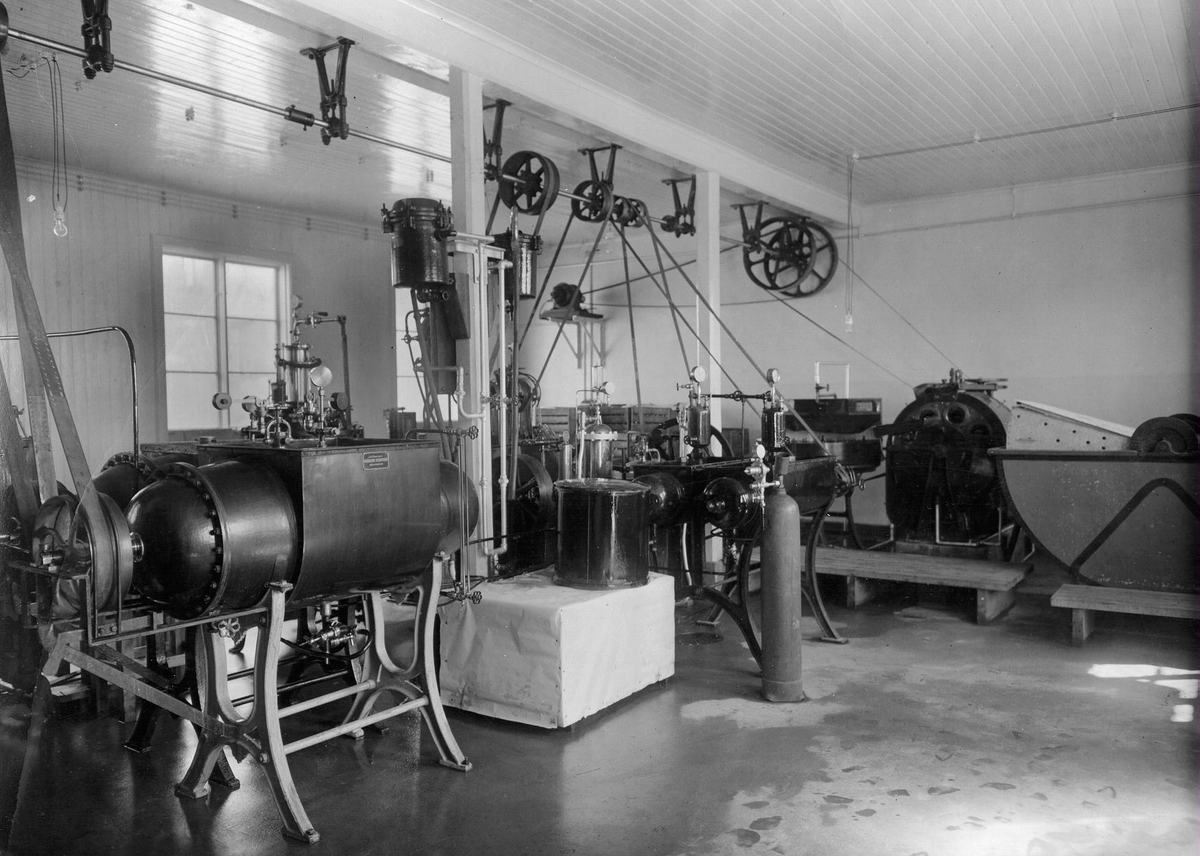 Titel: Interiör från Diurssons Vattenfabrik vid Viskadalsgatan på 1920-talet.
