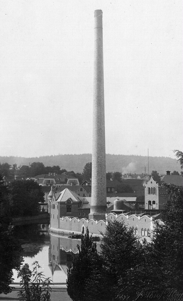 Borås Wäveri i kvarteret Prometeus sett från Stadsparken år 1923.