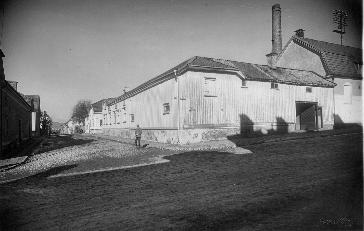 Sandgärdsgatan mot norr från Lilla Brogatan med kvarteret Tor år 1928.