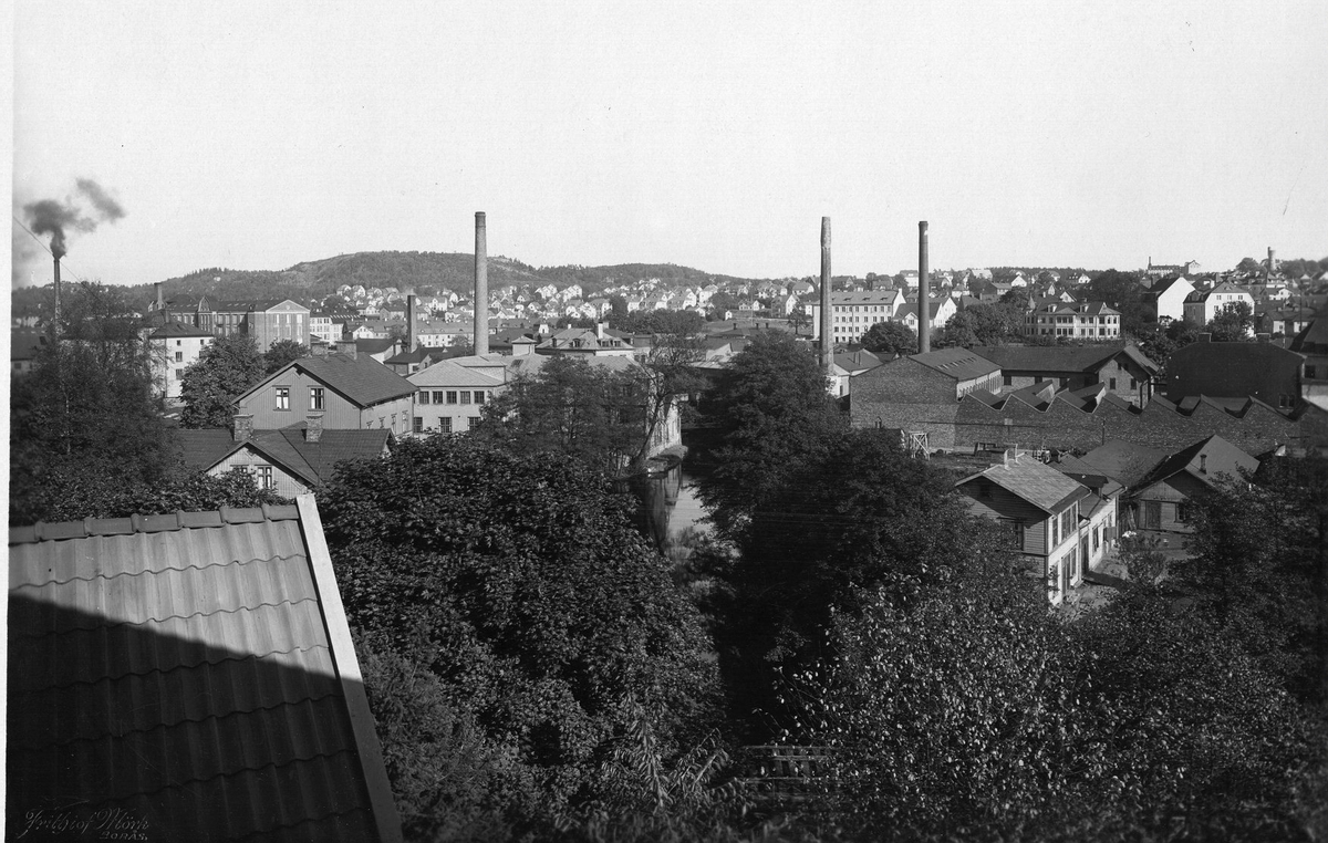 Vy från Norrby Långgata mot öster. Tokarpsberg vid horisonten och Simonsland till höger år 1930.