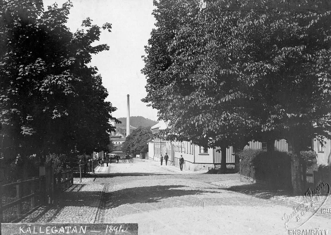 Källegatan år 1891 med kvarteret Semele t.h. i mellanplanet.