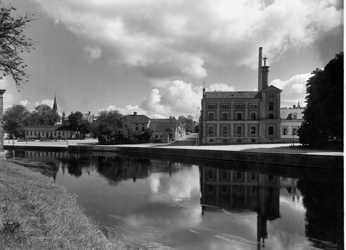 Kvarteret Saturnus t.h. med Sandwalls bryggeri och Södra Torget t.v. år 1924.