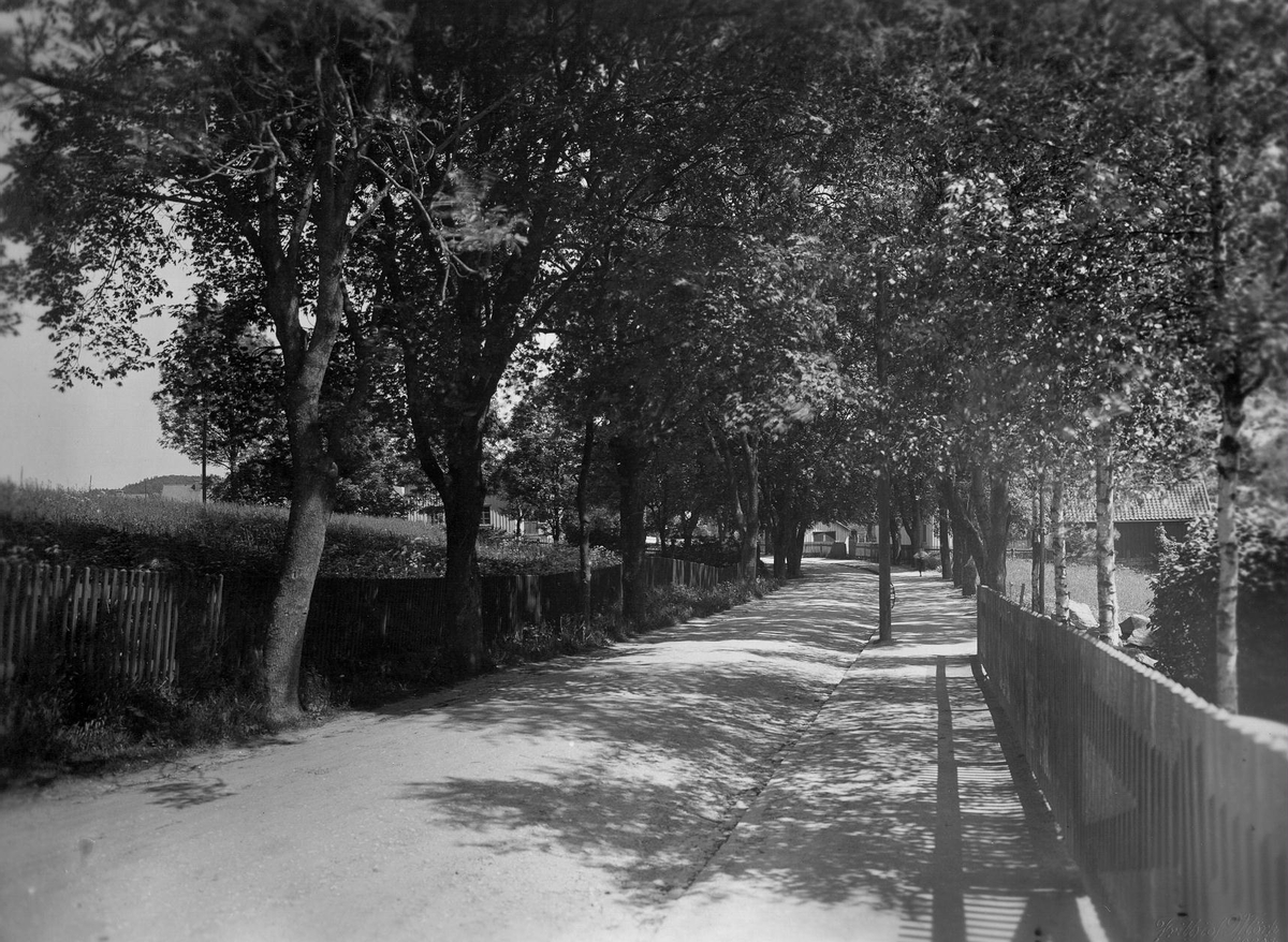 Gustav Adolfsgatan mot öster med Gustavsberg t.v. i mellanplanet. år 1926.