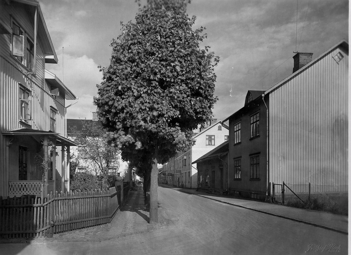 Norrby Långgata norrut med kvarteret Nordhem t.h. år 1929.