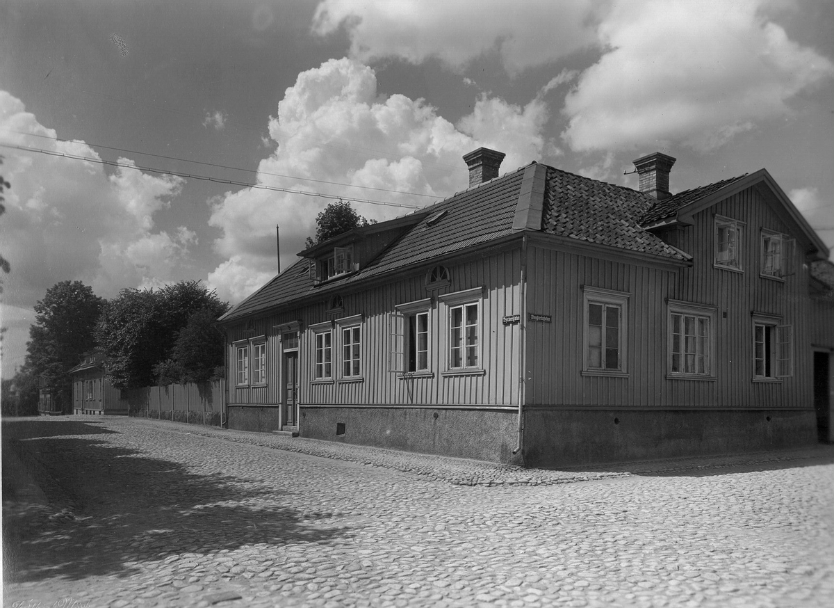 Kvarteret Bele 3 i hörnet Tryckerigatan t.v. Stengärdsgatan år 1925.
