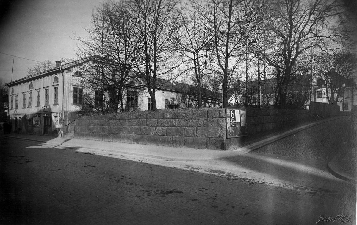 Österlånggatan 5 mot norr med kvarteret Apollo år 1927. Här var på 1800-talet tullmästare, hovjunkare Bagge bosatt. Här var också stadens tullmagasin beläget. Tullhusmagasinets gavel syns på bortre delen av bilden.