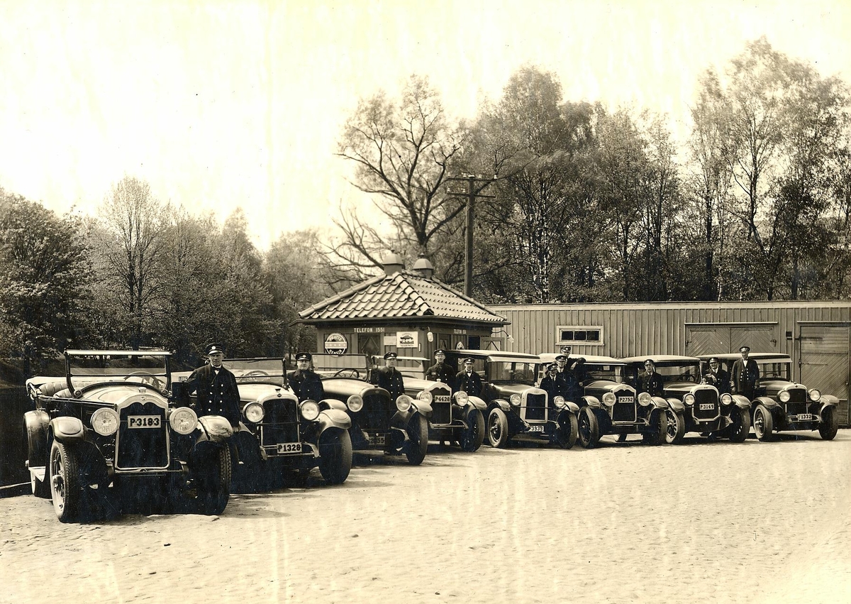 Chaufförer vid Borås Taxi, som var stationerat vid Teaterbron och som var verksamt mellan åren 1921 - 1931.